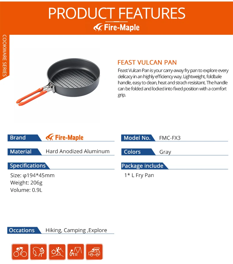 Feast Vulcan Pan is your carry-away fry pan to explore every delicacy in an highly efficiency way. Lightweight, foldbale handle, easy to clean, heat and strach resisitant. The handle can be folded and locked into fixed position with a comfort grip.